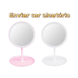 Quem ama maquiagem, barba, cuidado com pele ou simplesmente adora um espelho com vibe sofisticada vai adorar esse modelo. Com luz LED, rotação ajustável e base útil, ele é o toque moderninho que seu espaço merecia.